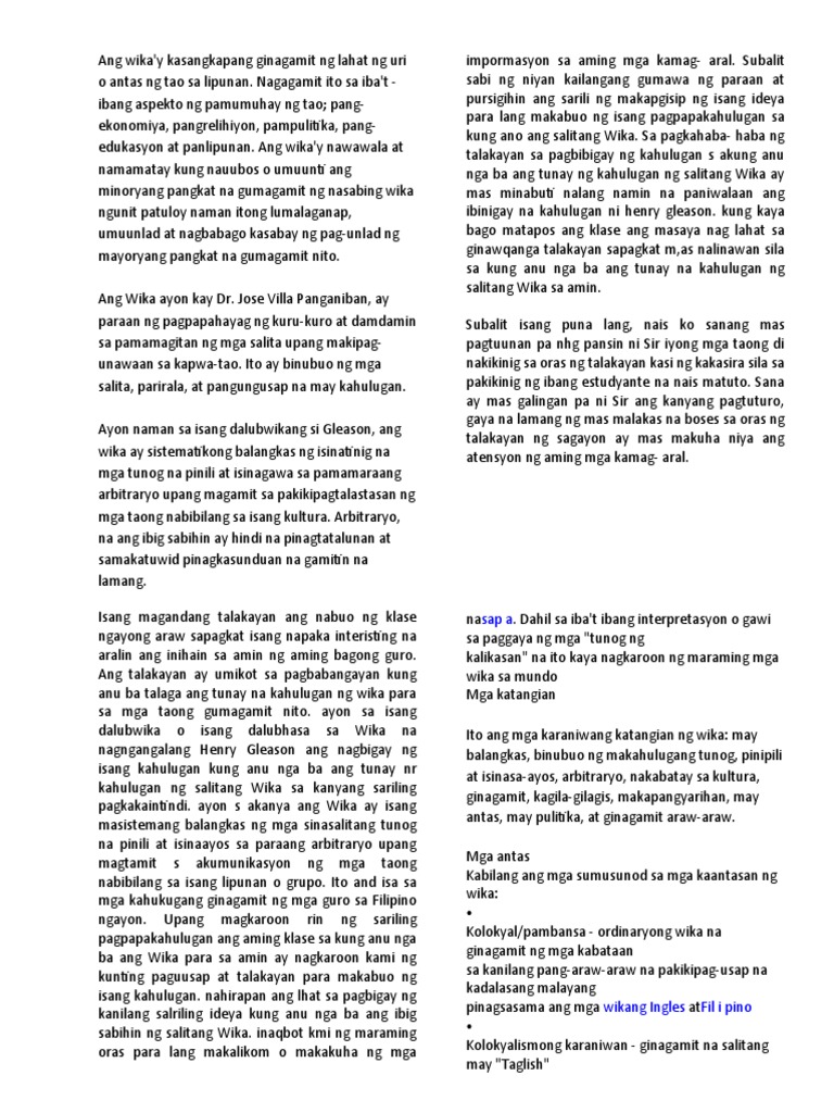 Kalaunan ang wika ay naging isang mahalagang paksa na rin ng pag-aaral sa mundo. Full PDF Package Download Full PDF Package. Kapag dumating ka sa isang bansa kung saan walang tao nagsasalita ng iyong sariling wika at ikaw ay may lubos na makipag-usap sa mga lokal na mga tao gawin mo ang lahat upang matuto nang mabilis ang mga lokal na wika.