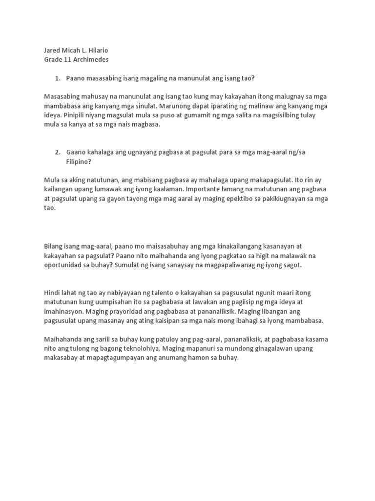 Bilang isang mag aaral ano ang kahalagahan ng pagsulat ng posisyong papel 1 See answer janellee janellee Explanation. Bakit mahalaga ang pagsulat sa isang mag aaral.