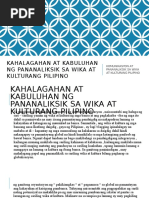 Kahalagahan ng pag aaral ng komunikasyon at pananaliksik sa wika at kulturang pilipino. Masusukat ang inilahad na Layunin at Kahalagahan ng Pag-aaral a. Mahirap matamo ang inilahad na Layunin at Kahalagahan ng Pag-aaral IV. Ang wika ay kabuhol ng ating kultura kaya naman isa sa mga pinakamahalagang katangian ng ating kultura ay ang paggamit ng sariling wika.